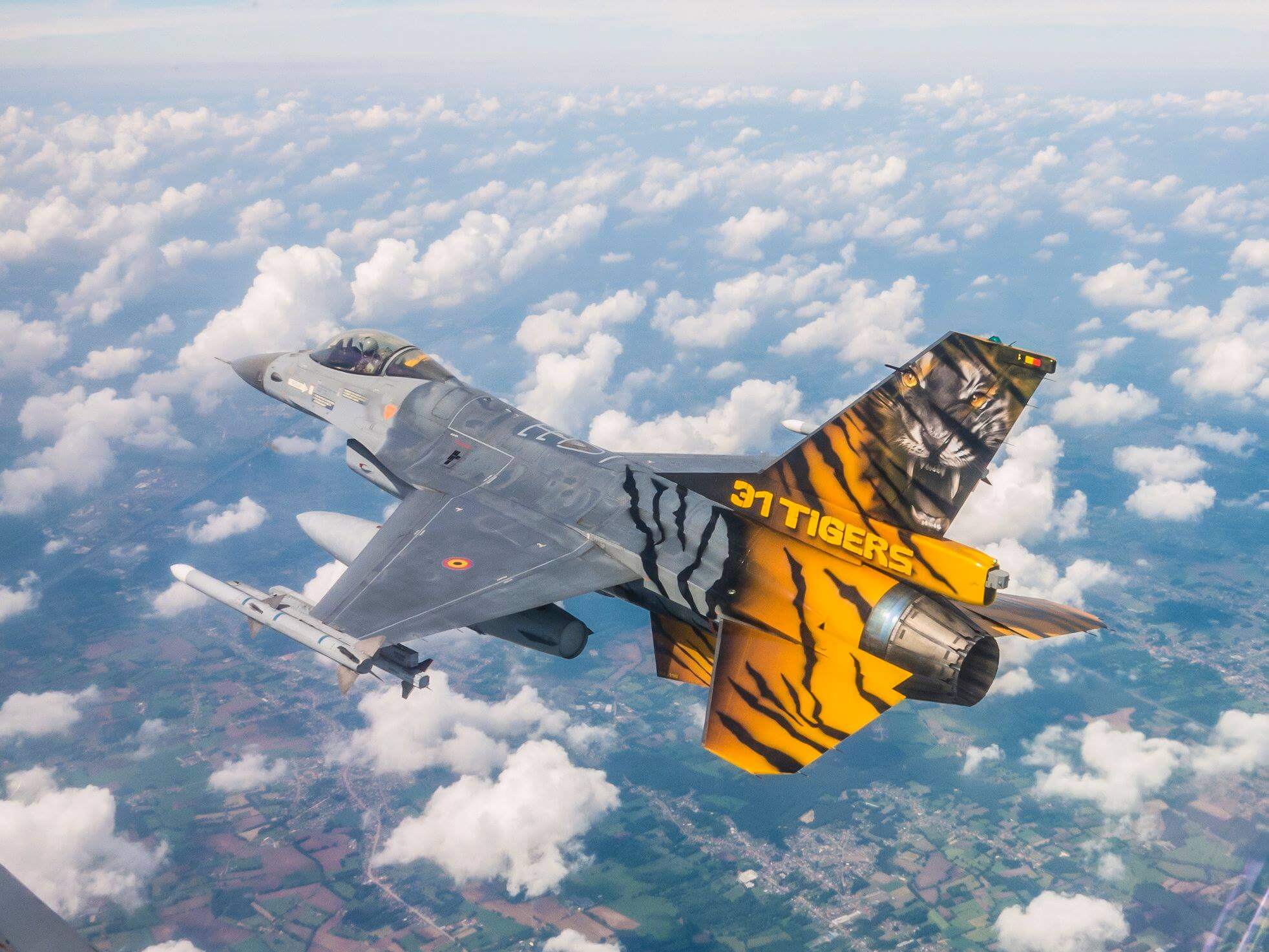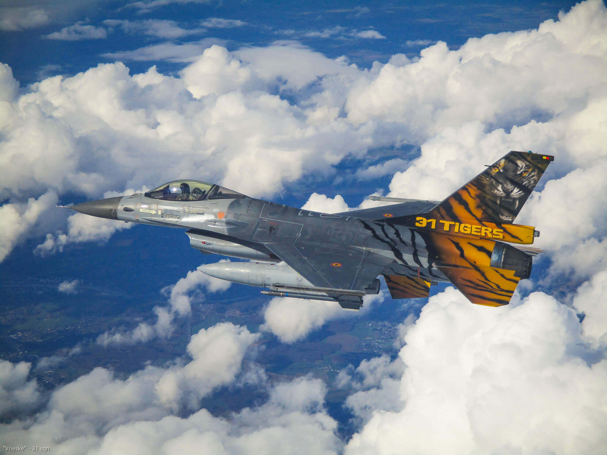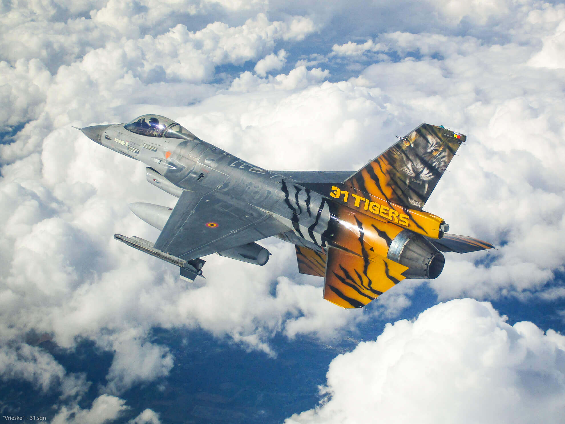 The design of FA-116 was made by Peter Verheyen and Johan Wolfs from Arte International, who are slowly reaching the ’50’ mark with their total amount of painted Jets. The painted FA-116 is currently number 45. Peter and Johan painted the jet in collaboration with the members of the 10 W Tac Paint Shop, who deserve all our gratitude from the squadron.