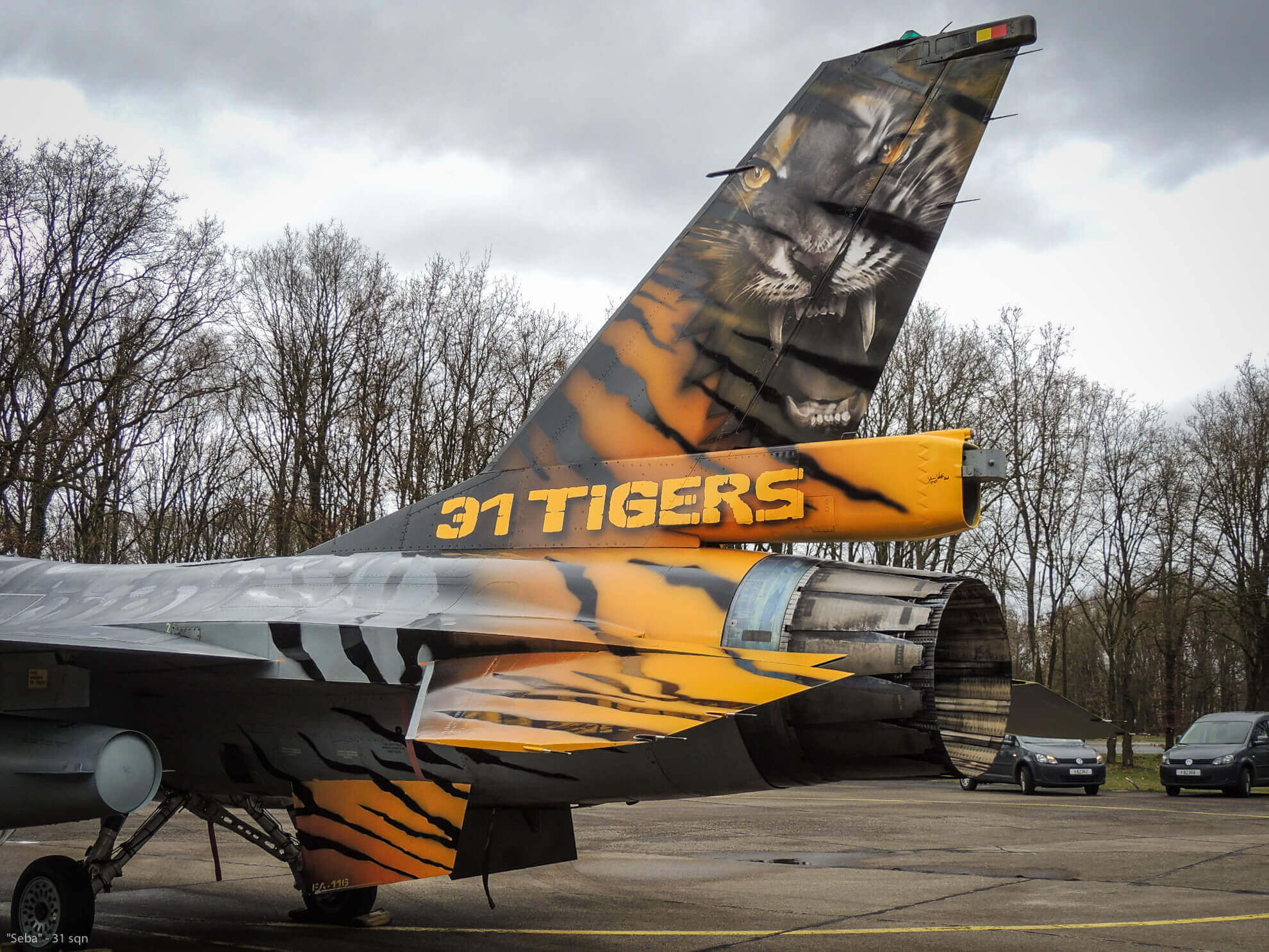 There it was, adorning the entire tail section of the mighty viper, solid black tiger stripes on a vibrant orange. “The other side’s even better!”, yelled Johan, breaking the silence and sighs of relief and amazement. The crowd went closer to the airframe, shuffling impatiently to the other side of the concrete slab the Viper was resting on.