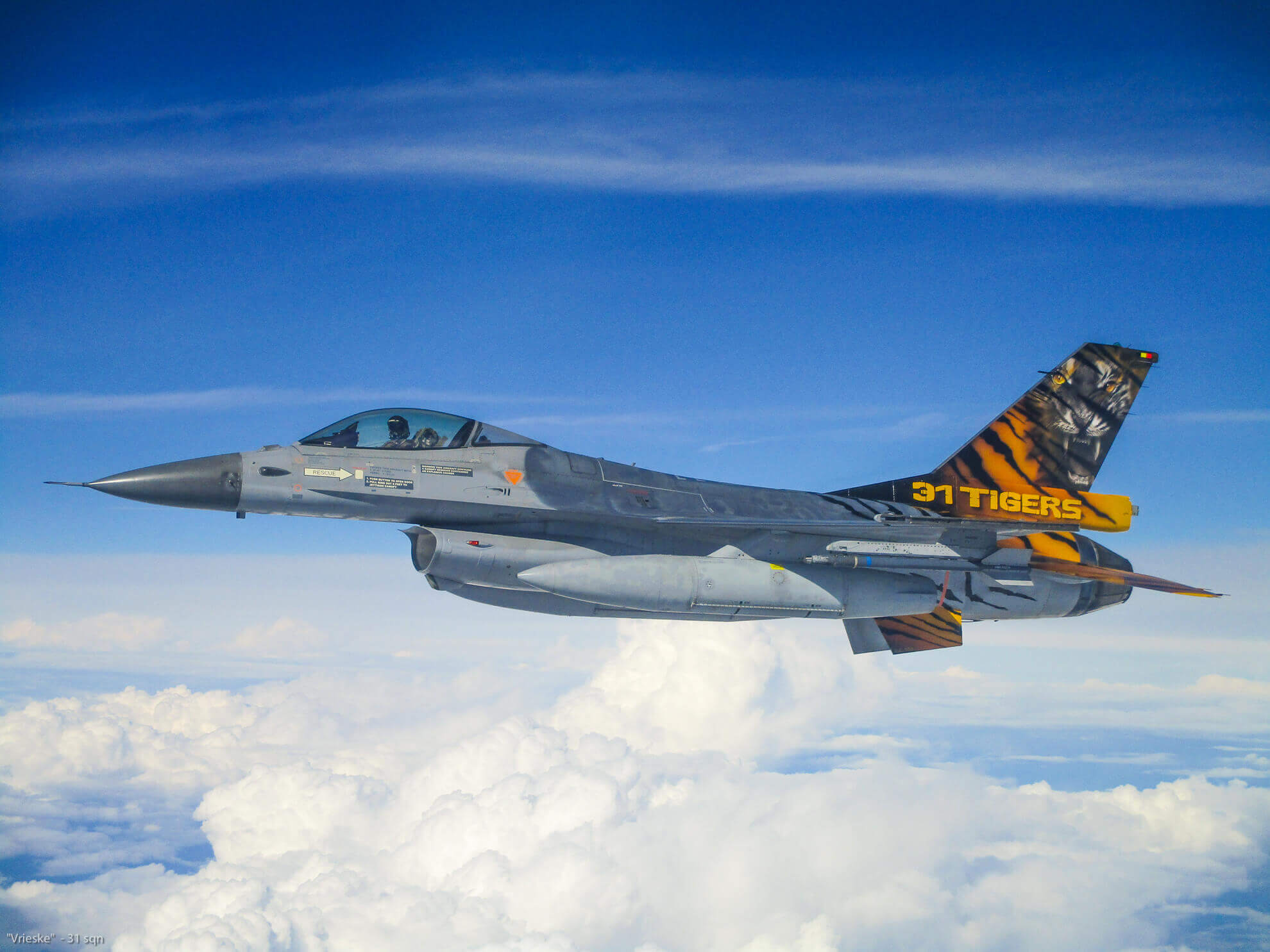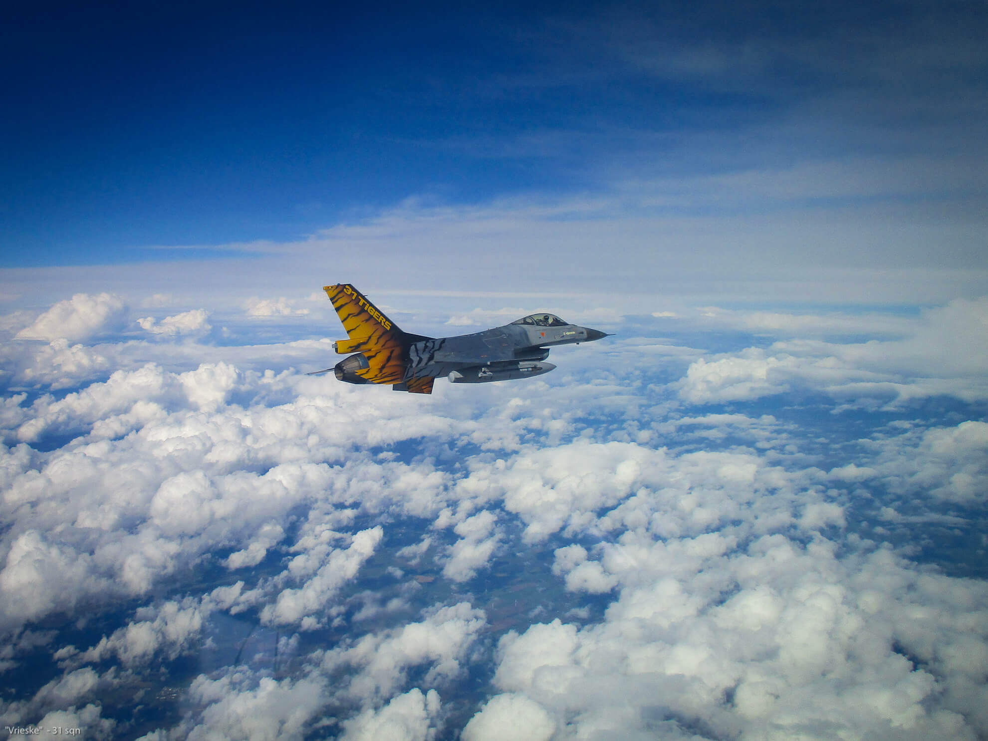 The squadron was treated with a new tail. With the maiden flight on the same day, and with an “intercept” during its flight to take the very-very-very first pictures airborne, above the clouds, in a perfect sky condition.