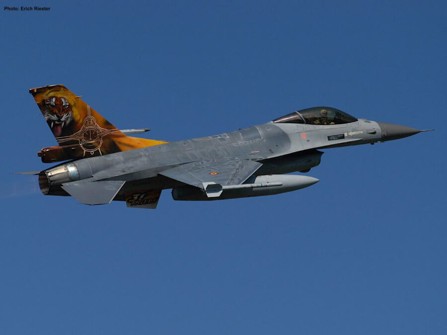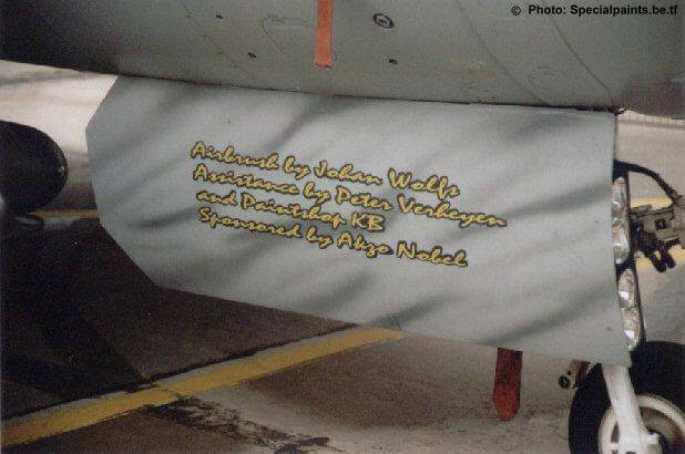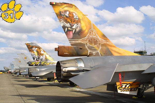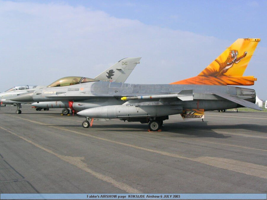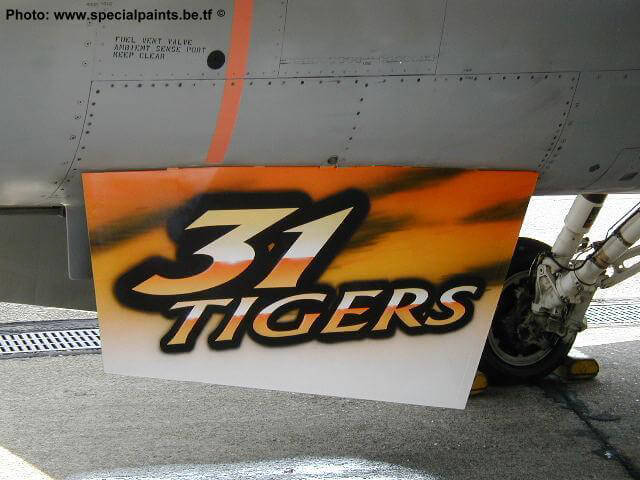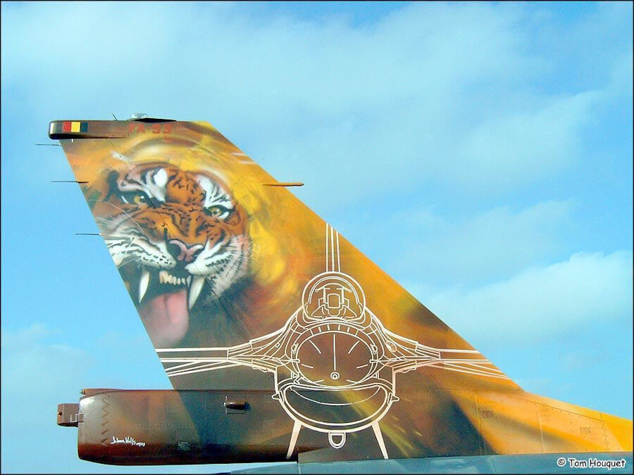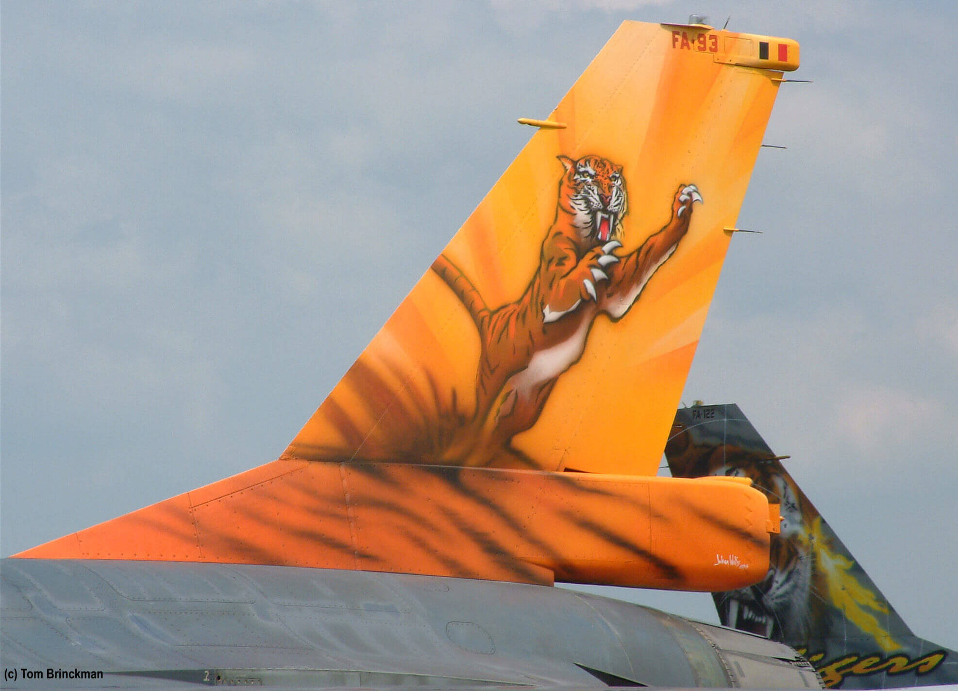 Another fine performance by painters Johan Wolfs and Peter Verheyen. The FA-93 crashed on 9 december 2003. It collided with another Tiger F16 (FA-122) during a training mission above the belgium Ardennes. Unfortunately, one pilot (Lt.Col Vaerten) died during this accident.