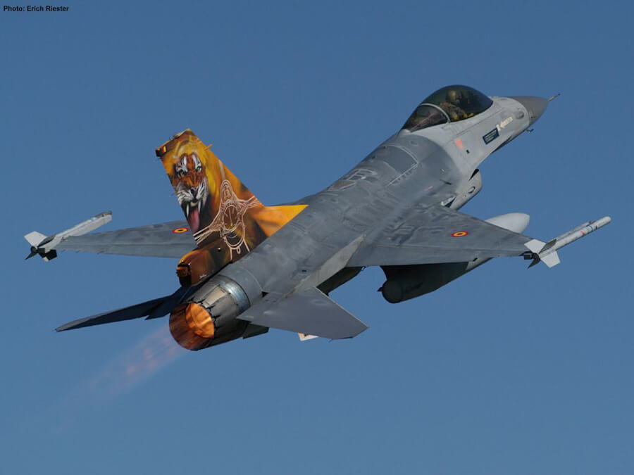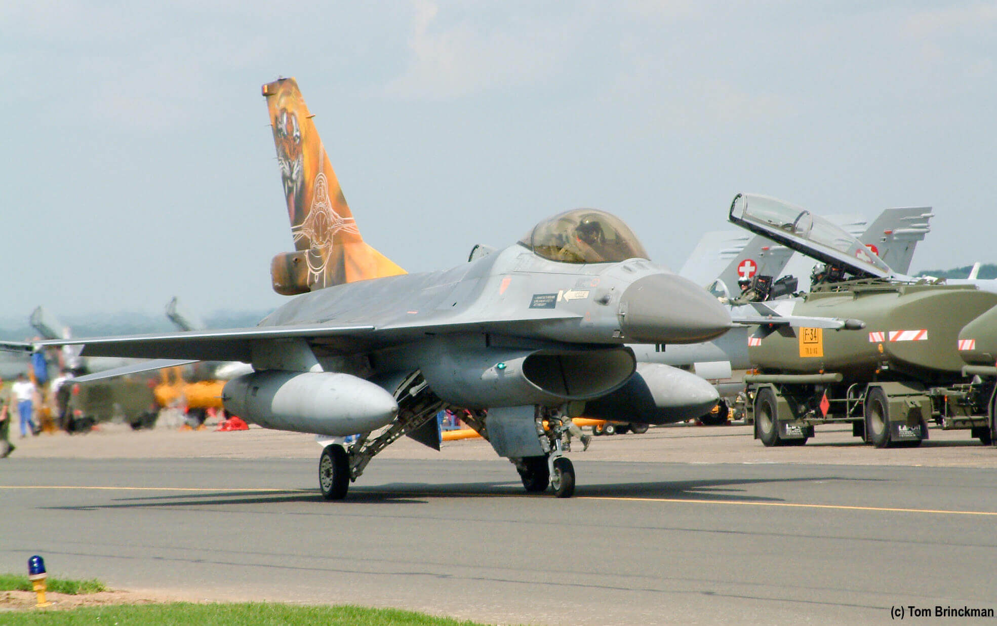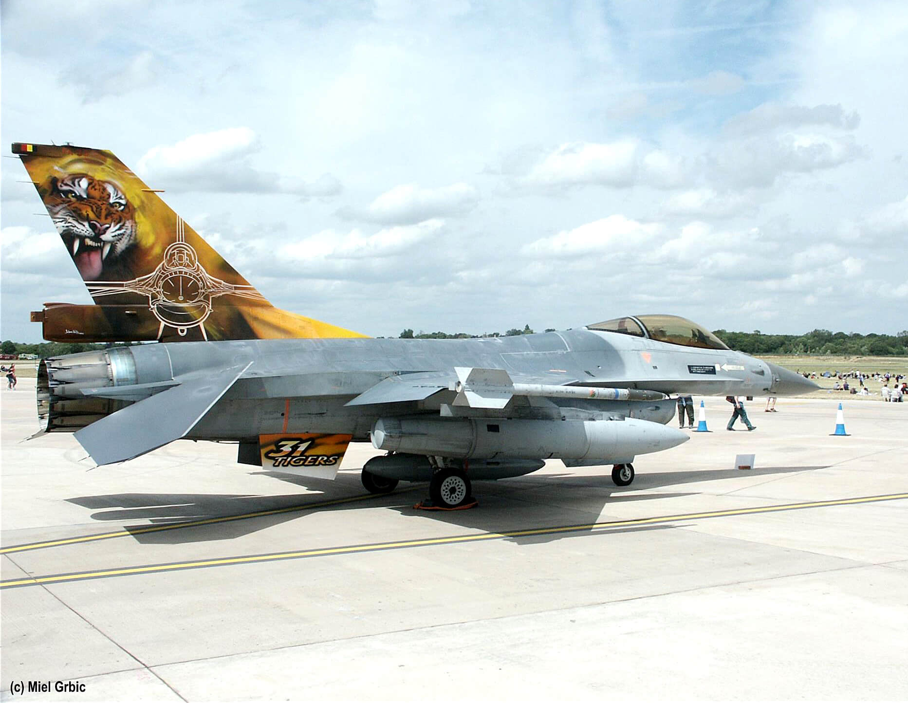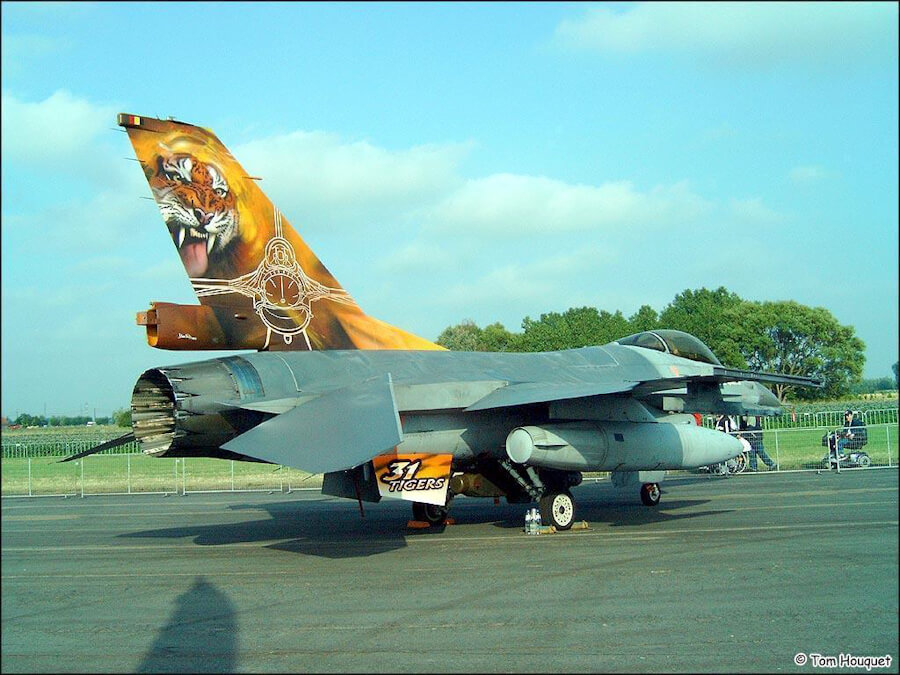 Another fine performance by painters Johan Wolfs and Peter Verheyen. The FA-93 crashed on 9 december 2003. It collided with another Tiger F16 (FA-122) during a training mission above the belgium Ardennes. Unfortunately, one pilot (Lt.Col Vaerten) died during this accident.