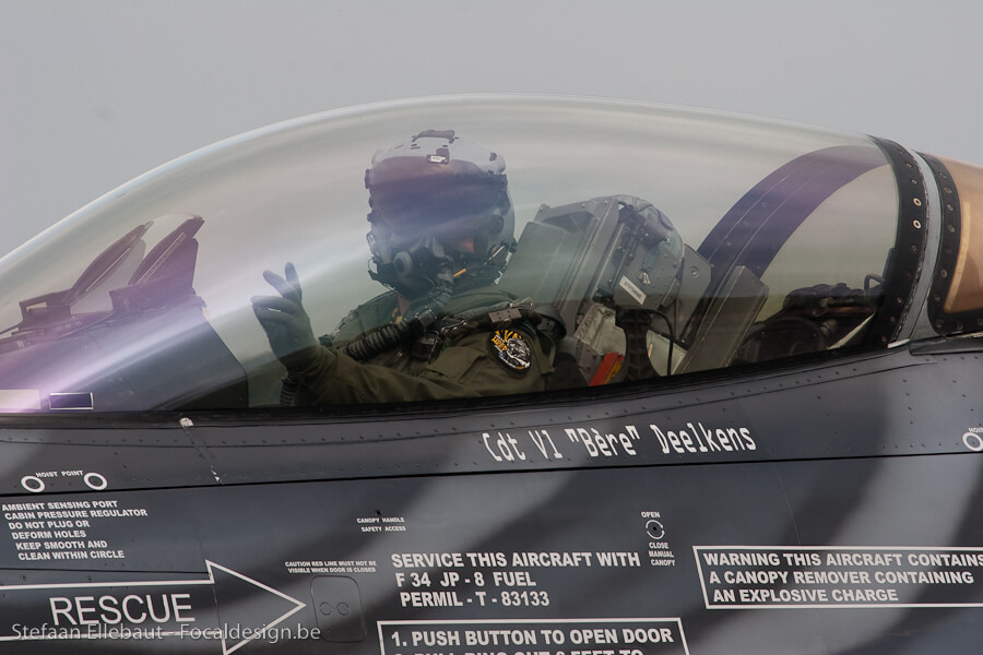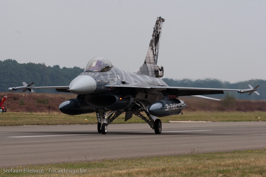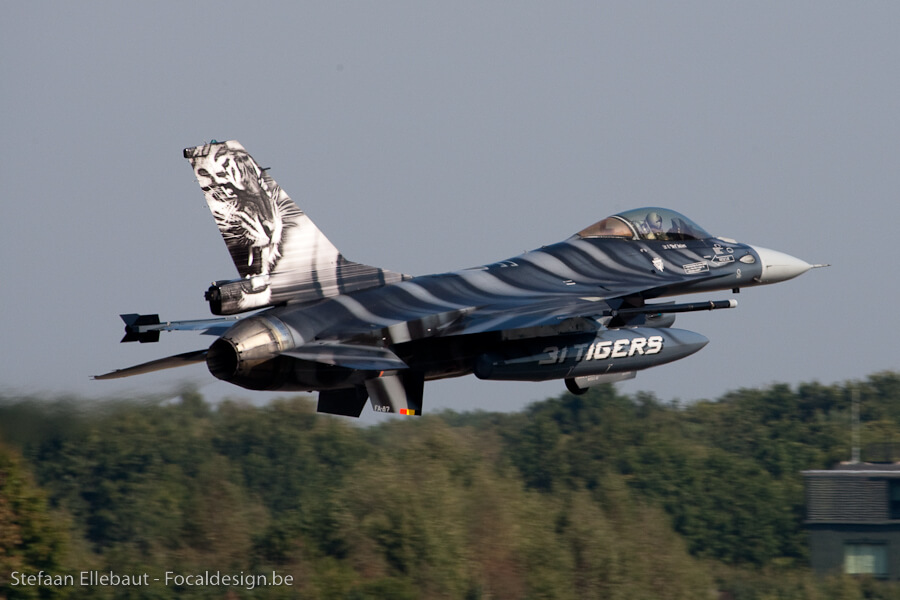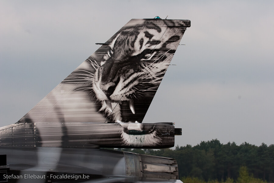 On September 9th, 2009 (09/09/09) in the presence of a select group of invites, the aircraft with callsign ‘Blackbird’ was presented in an aircraft shelter near the “Tigerslair’ by CO Poesen. The FA-87, which already was the 31 flagship since 2006, got a total remake by Johan Wolfs and Peter Verheyen. It has been since 1998 that a Belgian F-16 received a full body paintjob. This year they could make an exception because 31 sqn hosted the NATO Tiger Meet 2009. For this occasion, the F-104 G Tiger “Starfighter” FX-52 was brought to Kleine Brogel Airbase and also displayed alongside the “Blackbird”. Both aircraft bear witness of the rich past of 31 Squadron since its establishment in 1951.